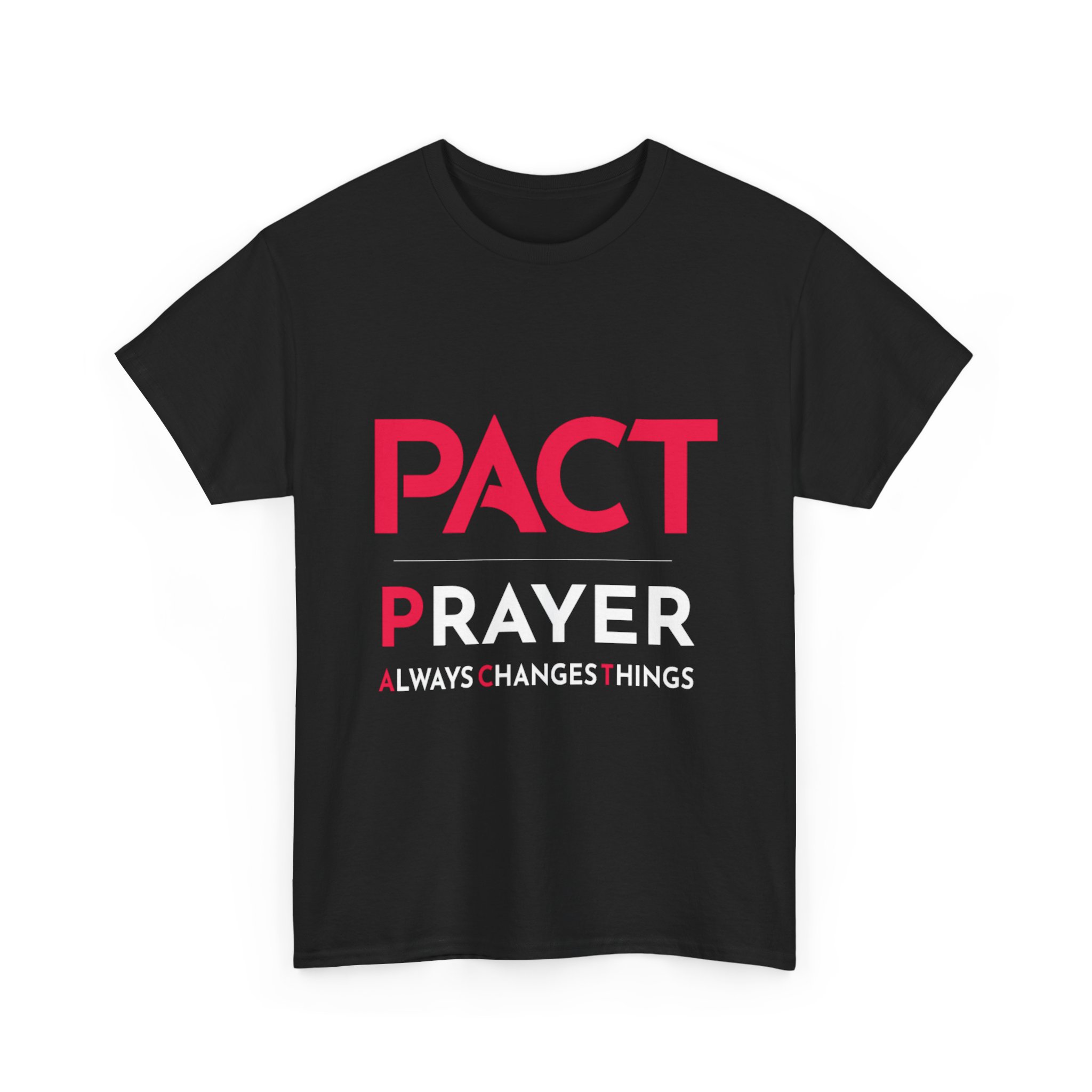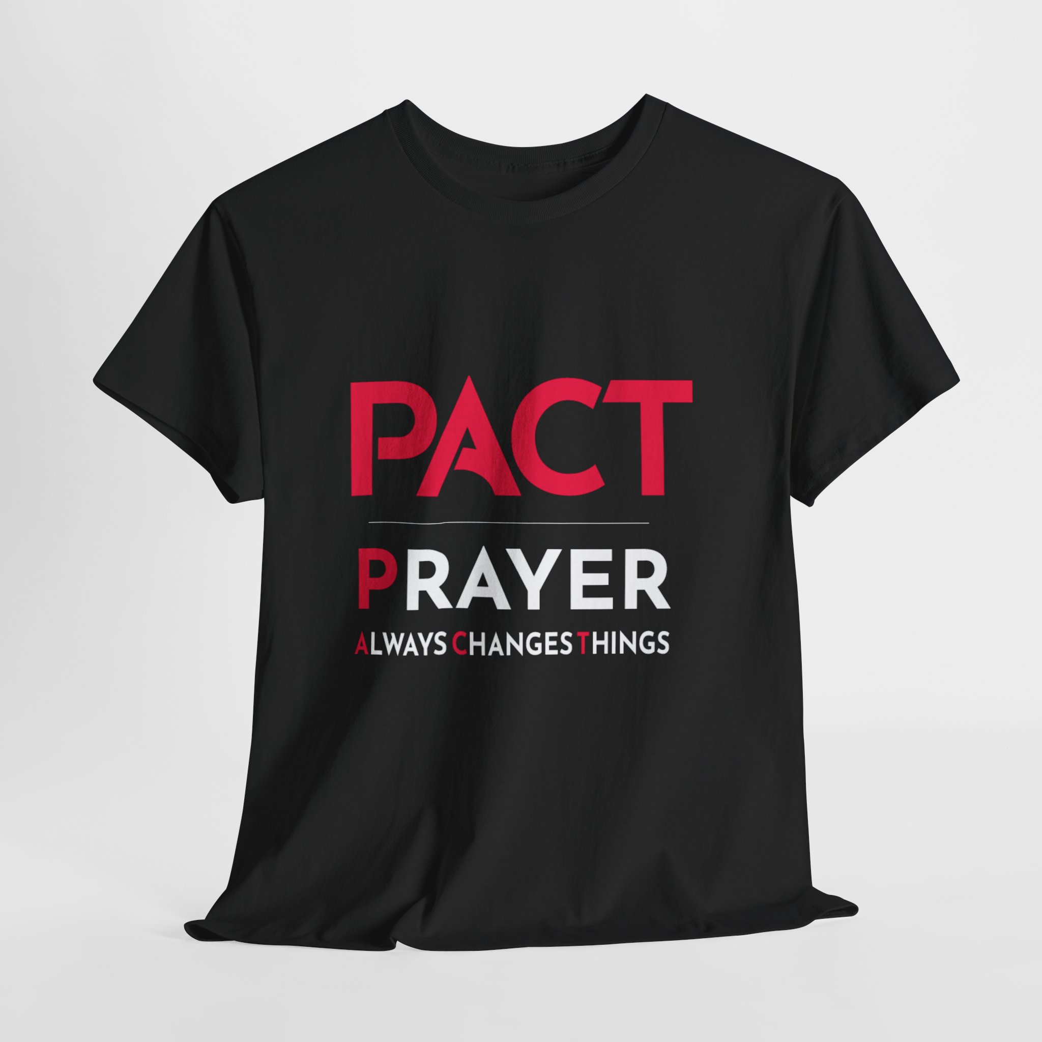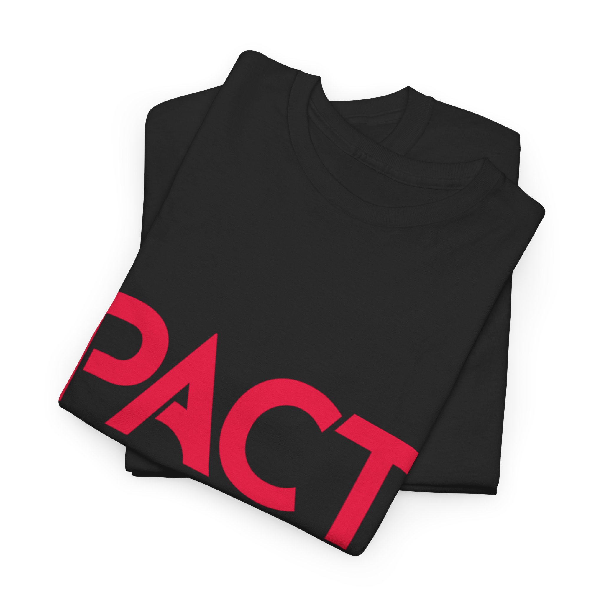 This relaxed-fit cotton tee carries a quiet, determined energy. The bold PACT logo—stacked in a clean, geometric type—reads like a statement you wear: concise, deliberate, and visible without shouting. The shirt’s soft, midweight fabric drapes easily and holds prints crisply, so the red graphic stays vivid wash after wash. Slip it on for a day of meetings, a casual rally, or a walk through the city; it’s a simple piece that anchors an intentional look and signals commitment without needing words.