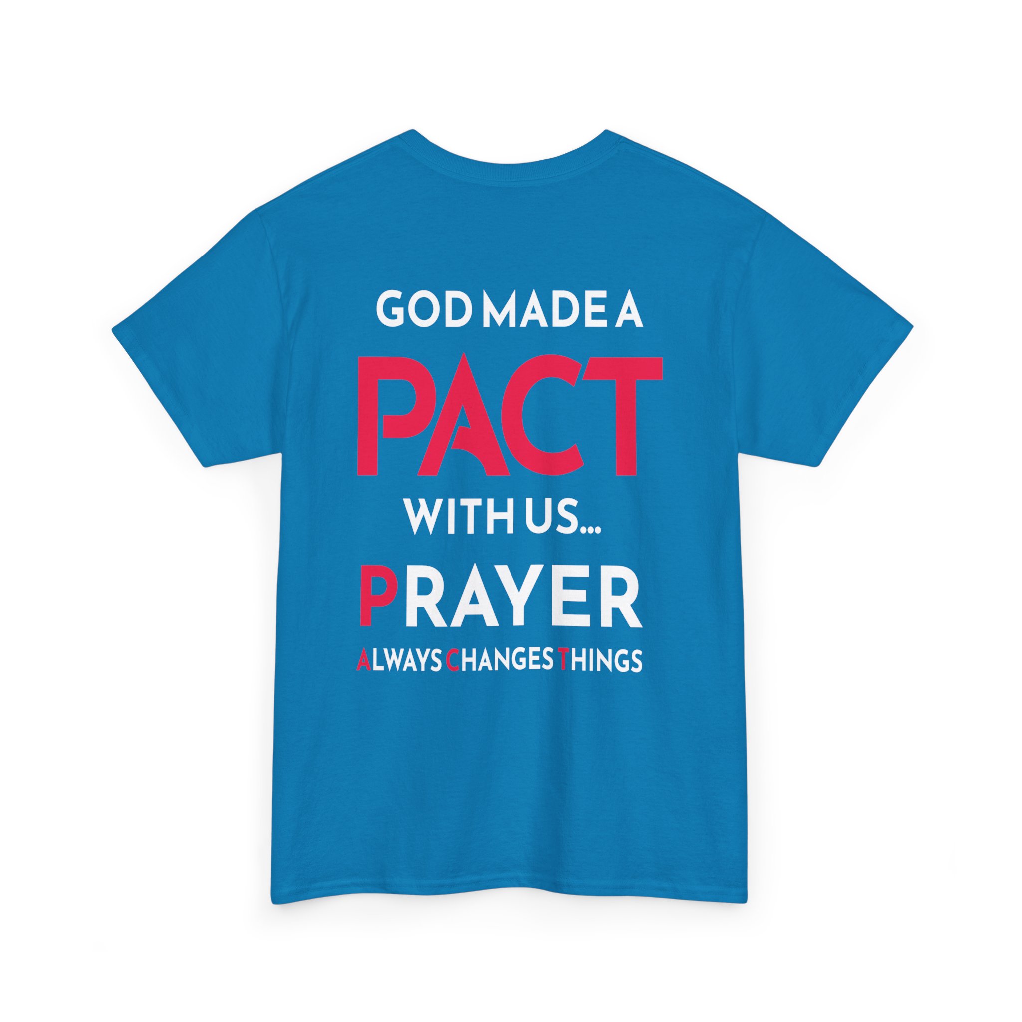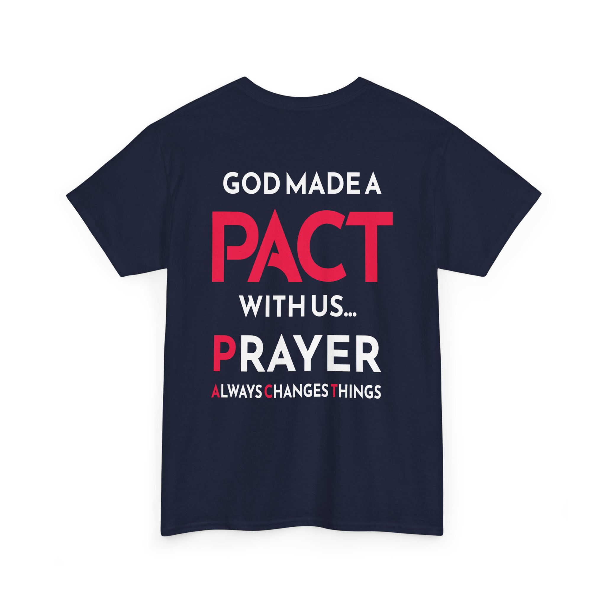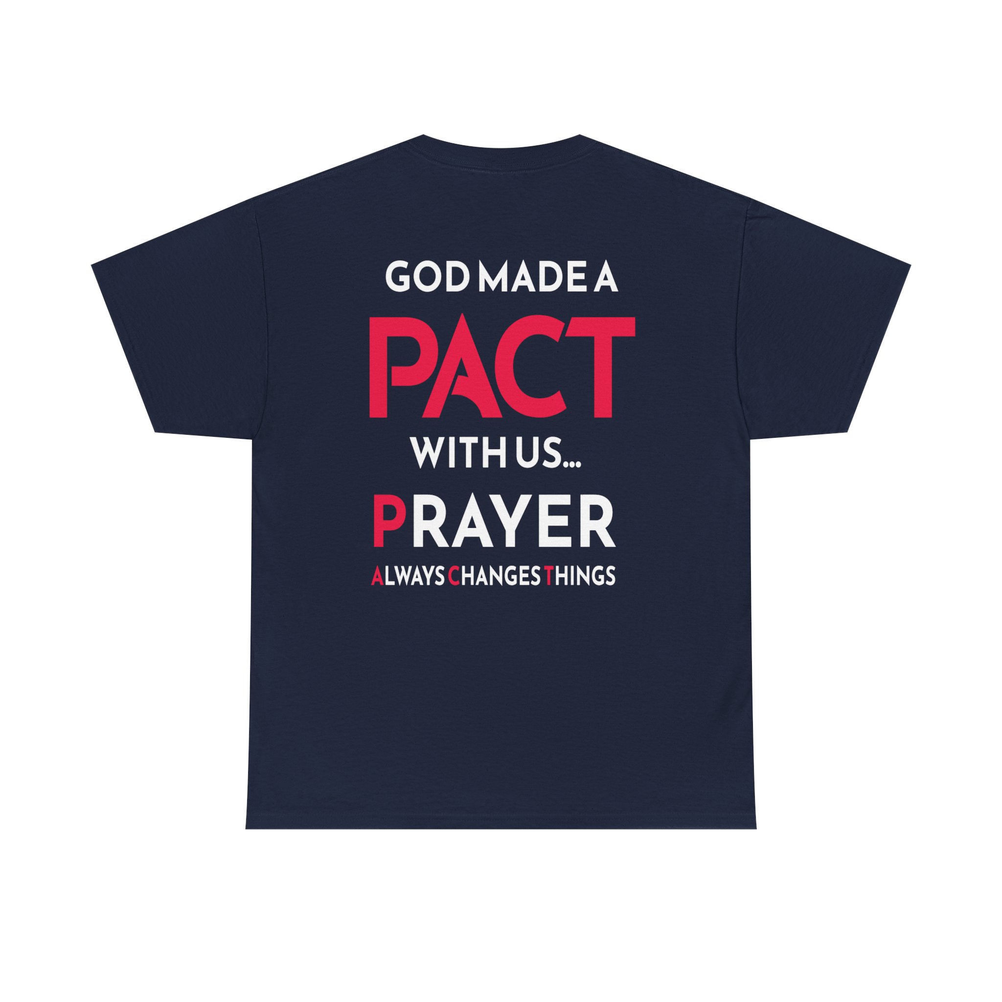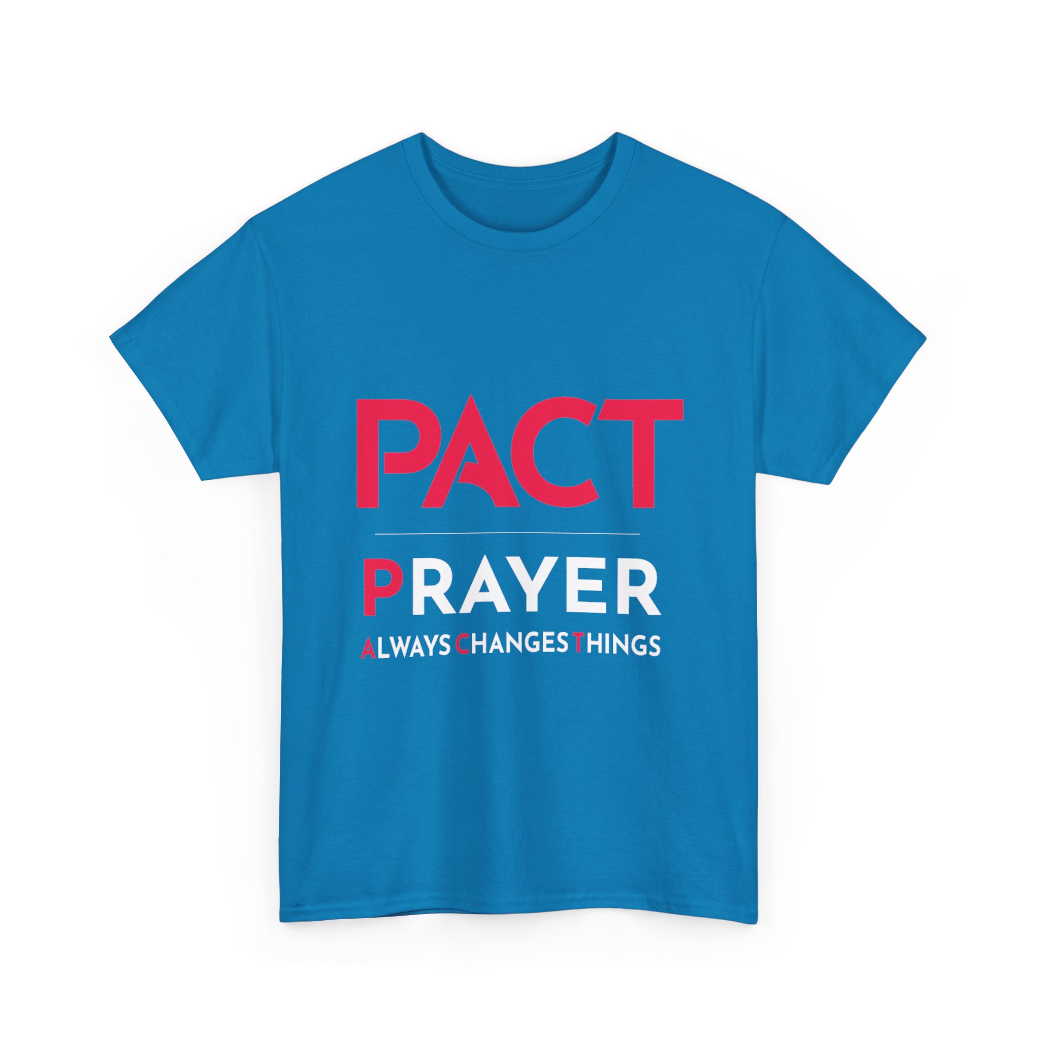 This relaxed-fit cotton tee carries a quiet, determined energy. The bold PACT logo—stacked in a clean, geometric type—reads like a statement you wear: concise, deliberate, and visible without shouting. The shirt’s soft, midweight fabric drapes easily and holds prints crisply, so the red graphic stays vivid wash after wash. Slip it on for a day of meetings, a casual rally, or a walk through the city; it’s a simple piece that anchors an intentional look and signals commitment without needing words.